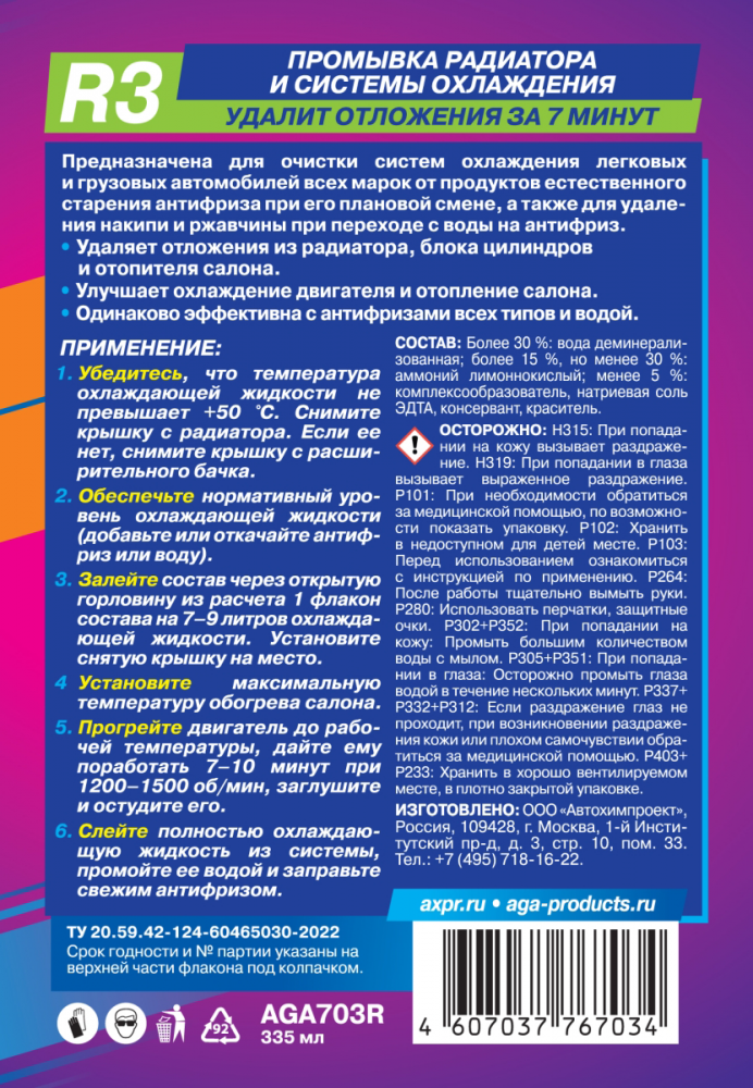 Промывка радиатора и системы охлаждения AGA R3 335мл AGA-703R